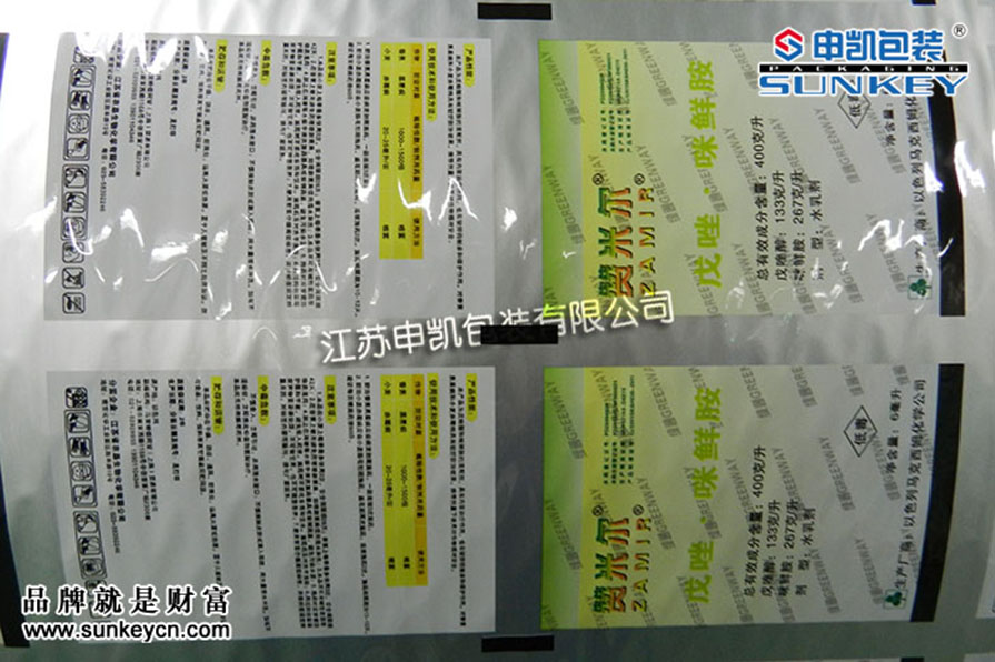 說明:農藥復合卷膜材質一般是由PET/AL/PE組成,經過印刷-檢品-復合-分切多層工藝。(農藥復合卷膜我們有專門的研發,根據包裝的產品不同經過測試選定包裝)