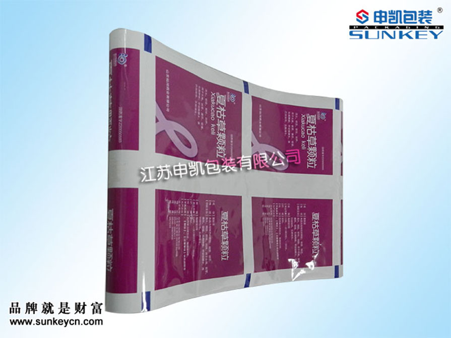 說明:彩色印刷顆粒包裝卷膜材質(zhì)一般是由PET/AL/PE組成,經(jīng)過復(fù)合-熟化-分切多層工藝。